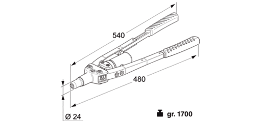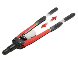 Verktyg för Farbolt, Tamp och konstruktionsnit. Tack vare teleskopiska utdragbara hävarmar, utvecklat för att öka hävarmsförhållandet och därmed minska ansträngningen vid fastsättning av niten.